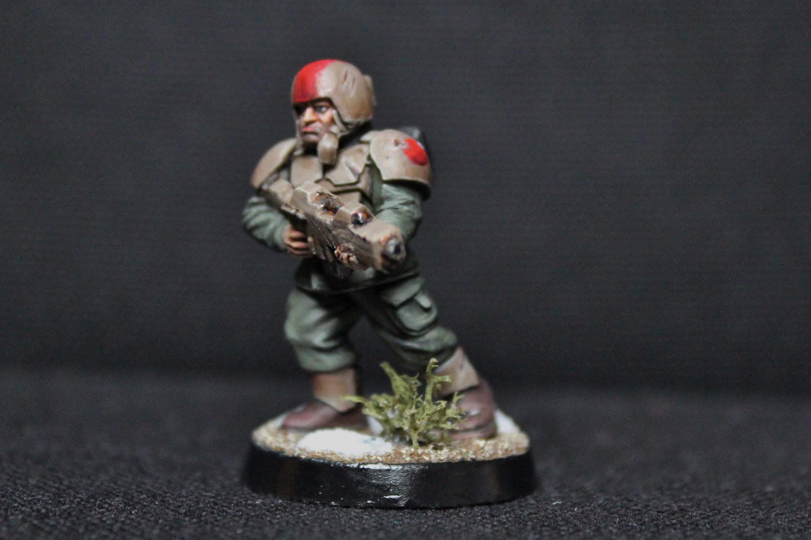 J'ai toujours voulu faire des socles enneigés, alors quand j'ai reçu hier du bicarbonate de soude, j'ai tout de suite essayé sur l'un de mes miliciens fraîchement peint ! :)